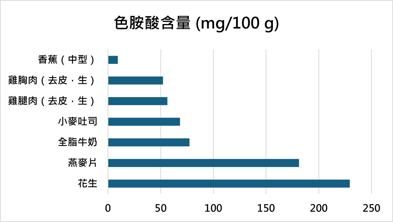※含量較高<色胺酸>食物:每100g食物相當於=