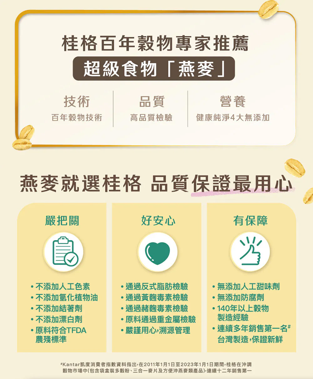 .燕麥含有豐富的膳食纖維,雙纖配方-幫助維持消化道機能。