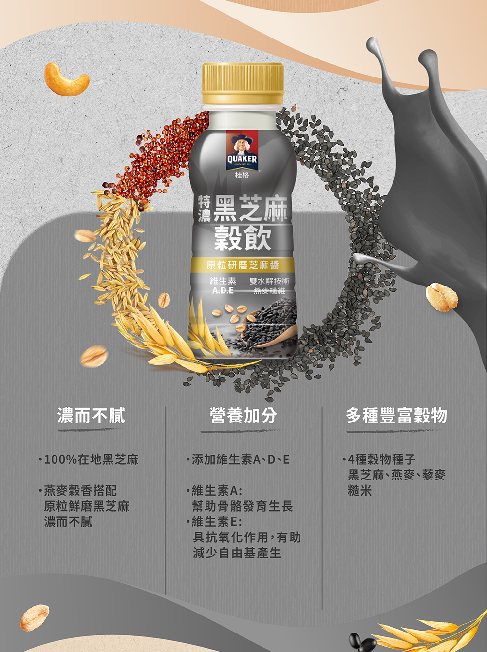 .添加維生素A、D、E可幫助骨骼生長、抗氧化及降低自由基產生,濃郁馥厚口感滿足追求營養美味,特濃配方更有飽足感!