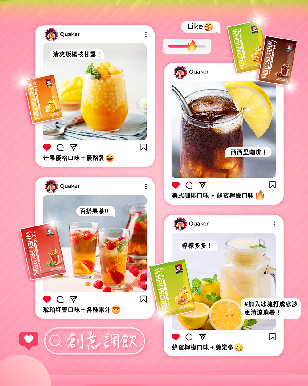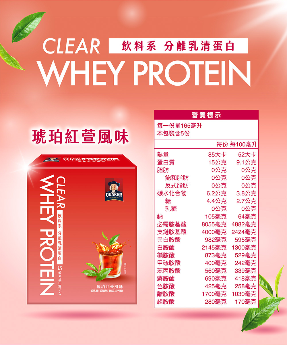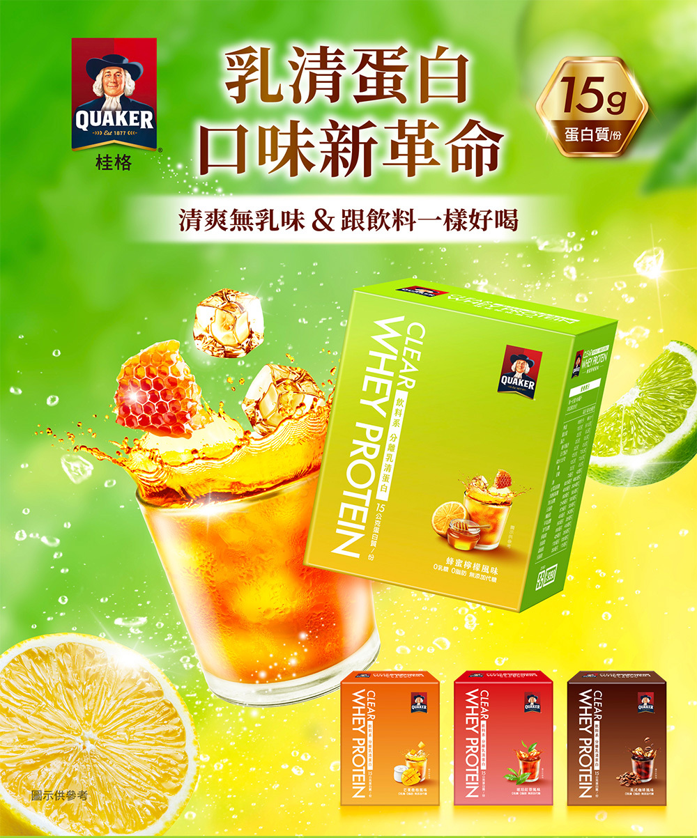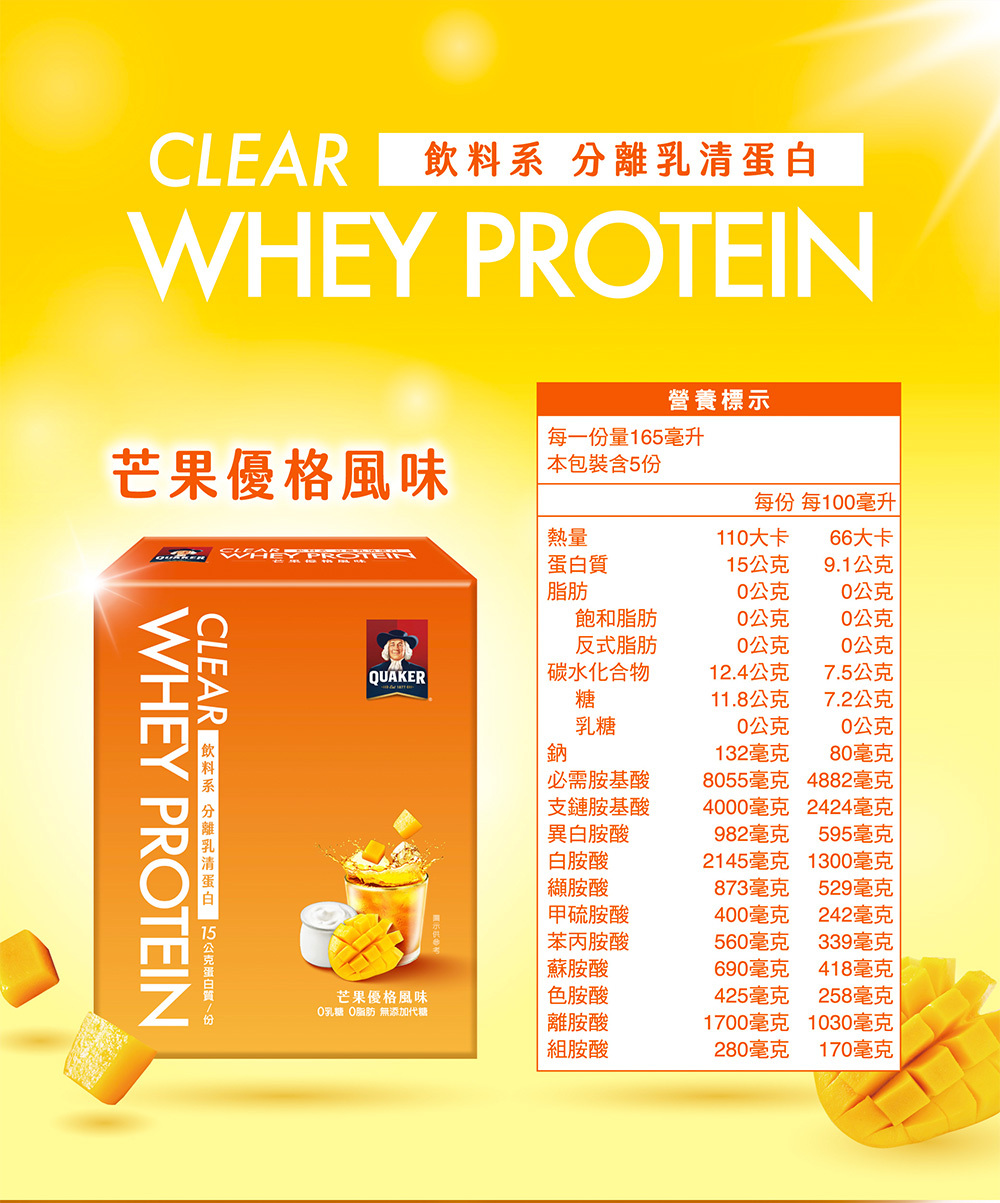 .飲料系乳清使用透明分離乳清蛋白,0乳糖、去除乳清不好喝的口感、清爽果香口感