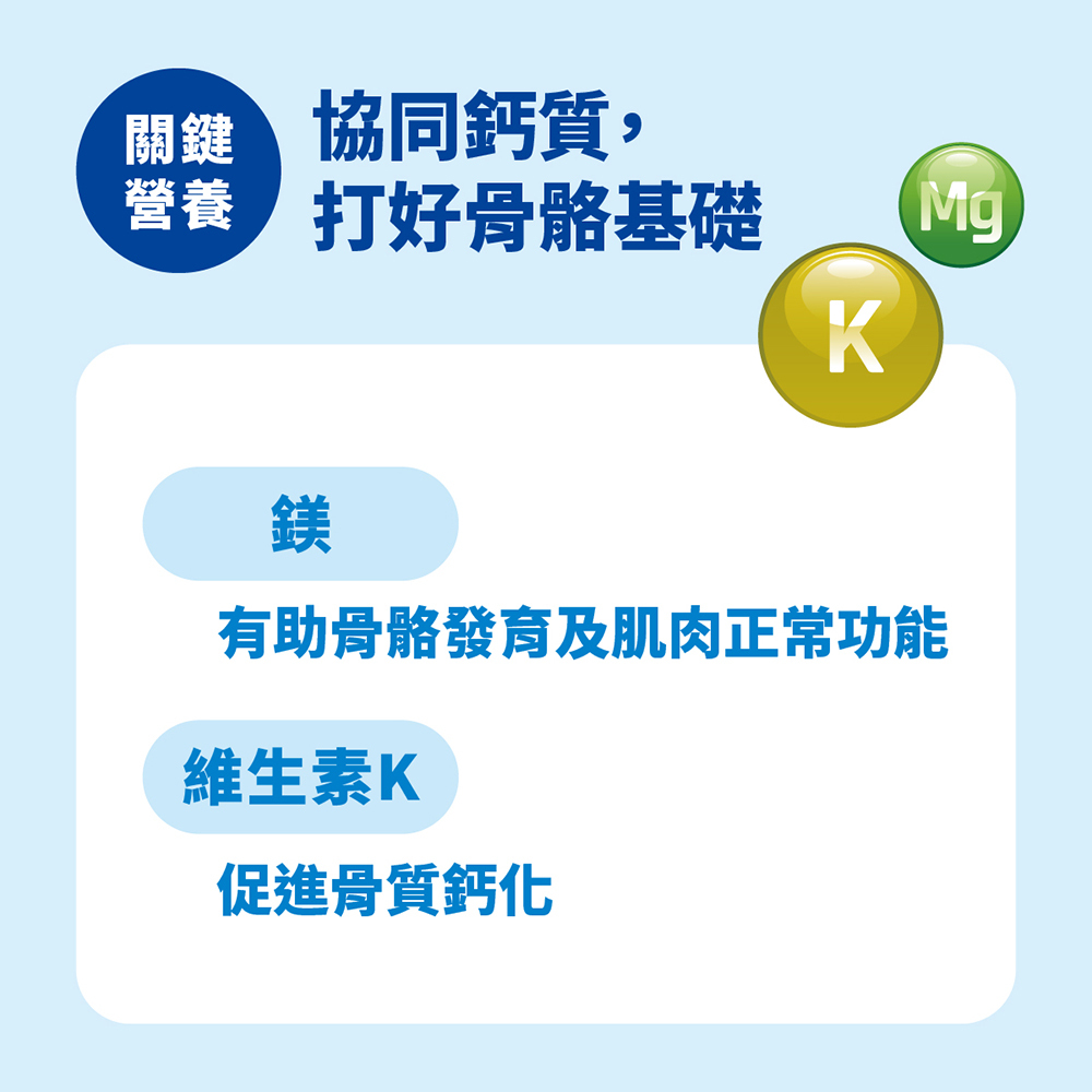 .第三重:添加鎂鋅銅錳及菊糖,創造適合鈣質吸收環境,提升鈣質利用率,還有30多種營養素,符合每日均衡營養所需