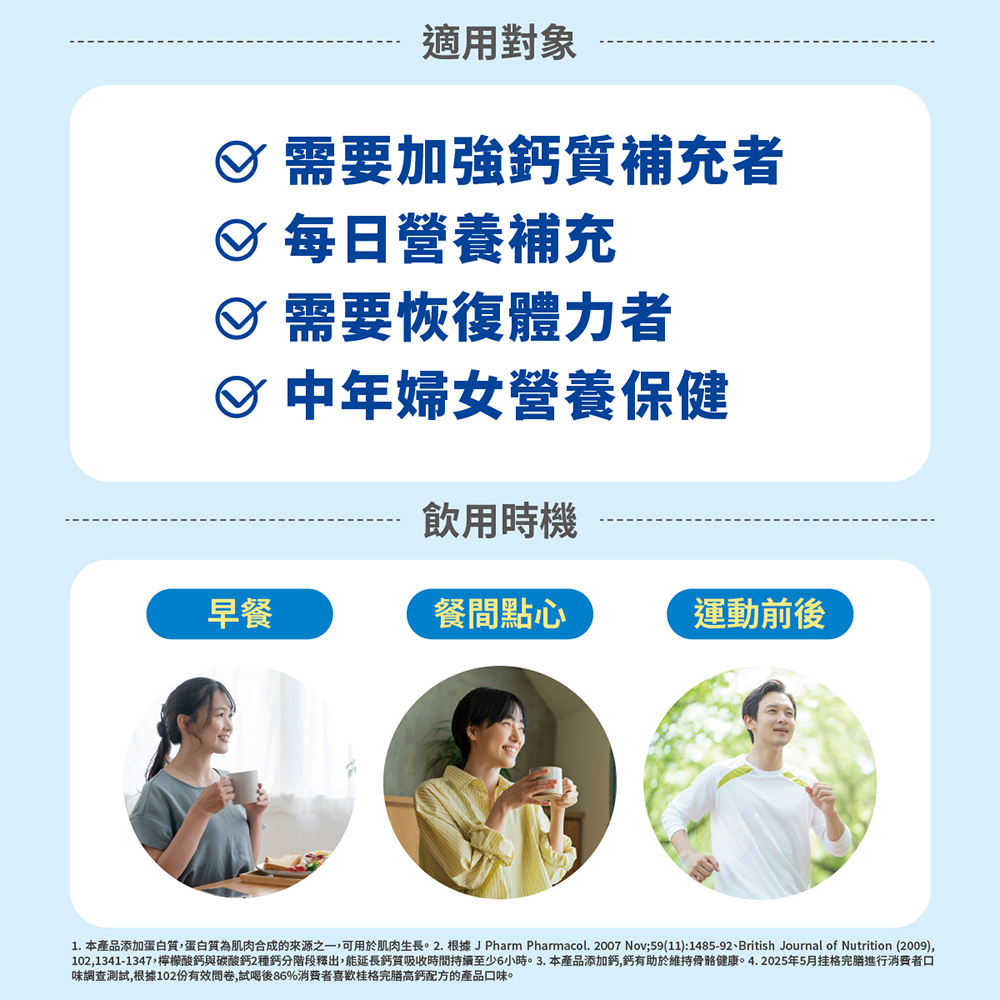 .適用對象:需補充鈣質者、每日營養補充、需恢復體力者