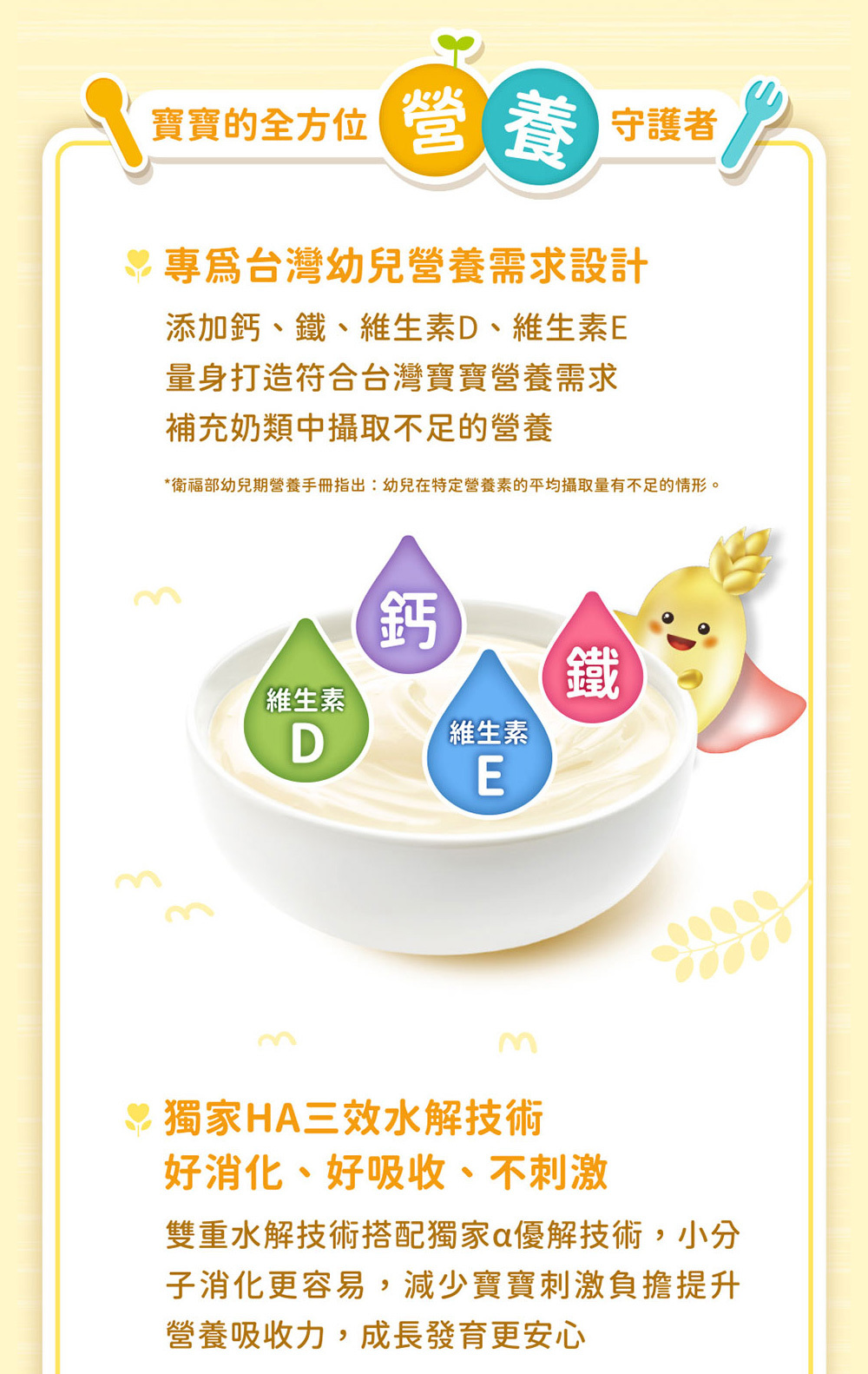 ·添加鈣、鐵、維生素D&E,寶寶成長關鍵