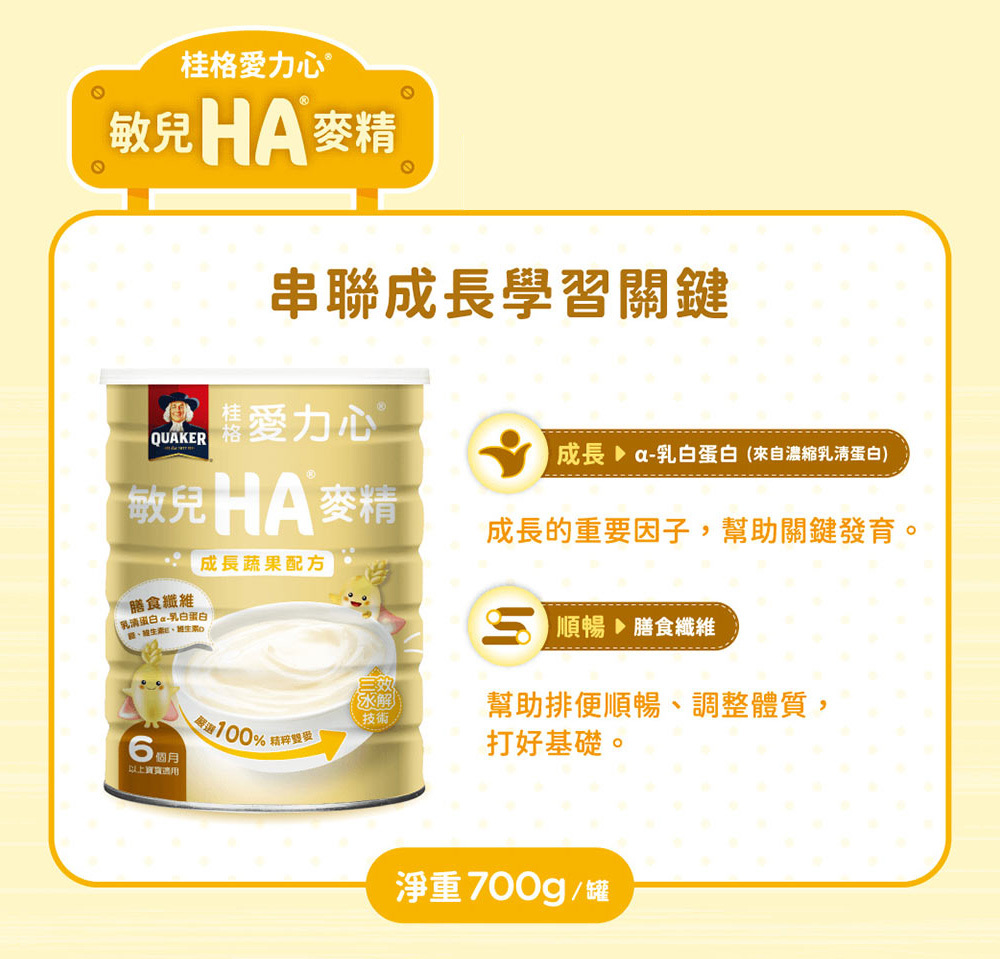 ·獨家HA三效水解技術,避免腸胃刺激 (a-優解技術+纖維水解),小分子更好吸收消化!