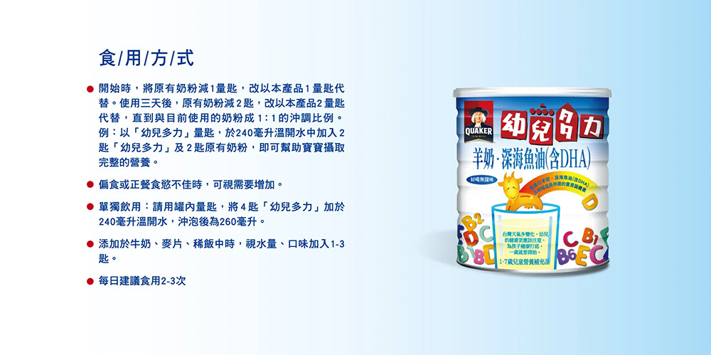 .含幼兒成長所需的鈣、鐵等多元營養成分