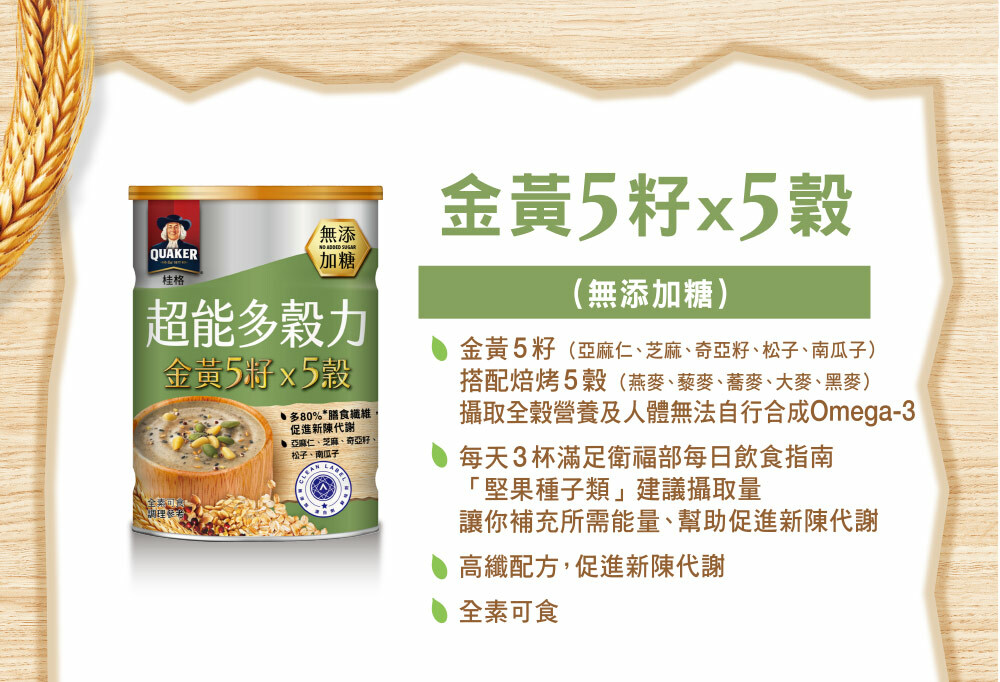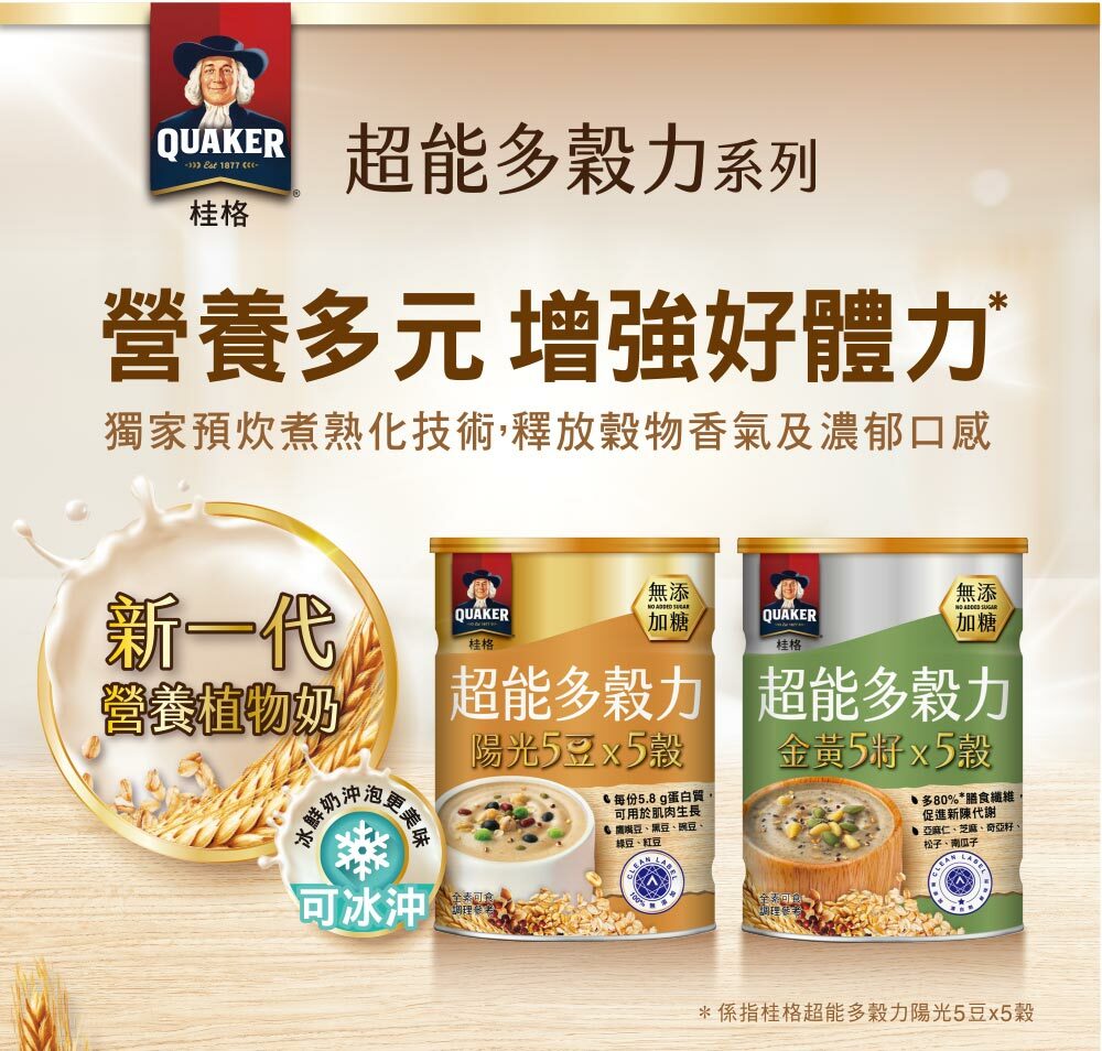 .「桂格超能多穀力」含有維生素E,具抗氧化作用,減少不飽和脂肪酸的氧化;鋅,可增進皮膚健康;菸鹼素,有助於維持能量正常代謝。一天一杯「桂格超能多穀力」,是活力生活的好選擇。