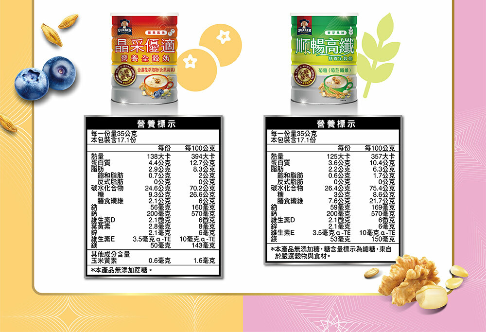 .燕麥、奶粉與多元穀物堅果,滿足每日基礎所需營養