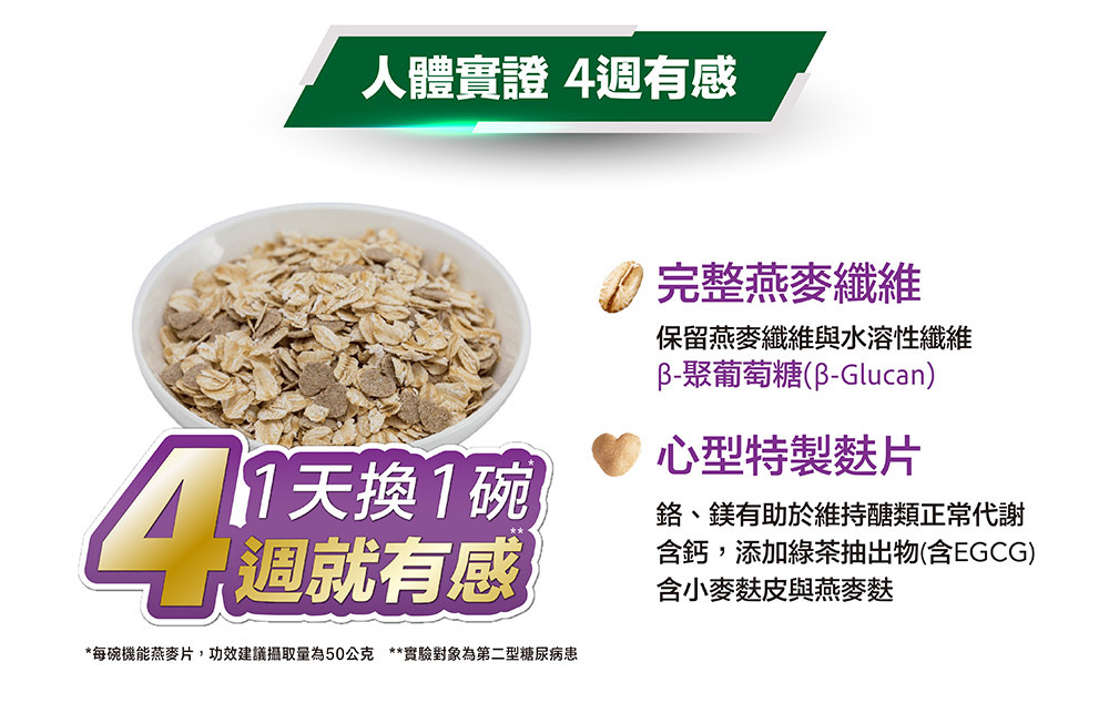 *每碗機能燕麥片,功效建議攝取量為50公克
