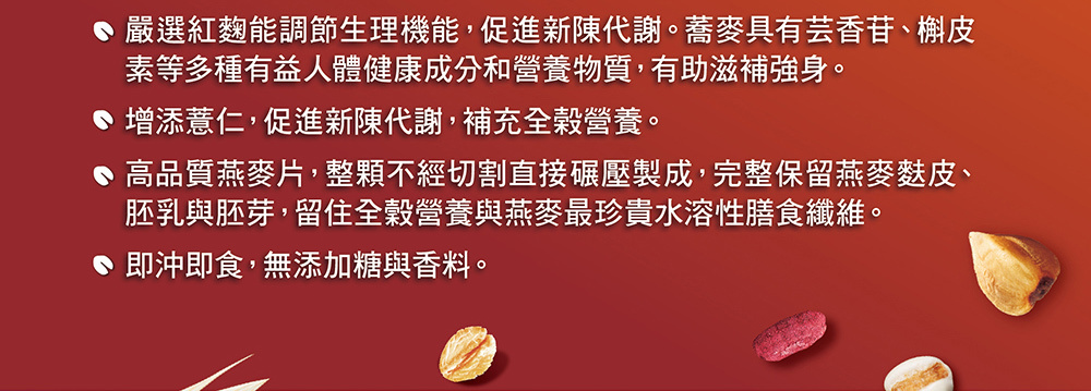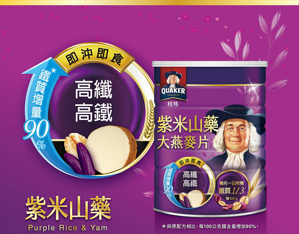 *每100公克含有10.5克以上的紫米與山藥,最適合現代女性食用的燕麥片
