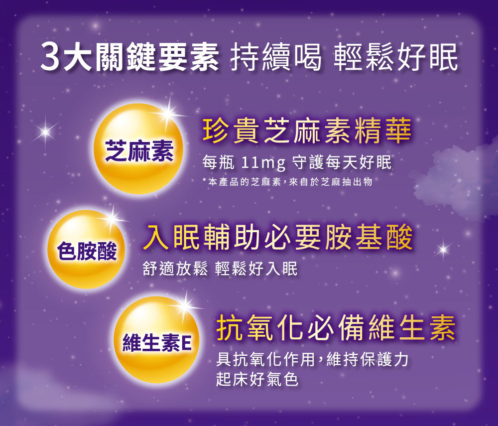 .三大關鍵要素,芝麻素/色胺酸/維生素E
