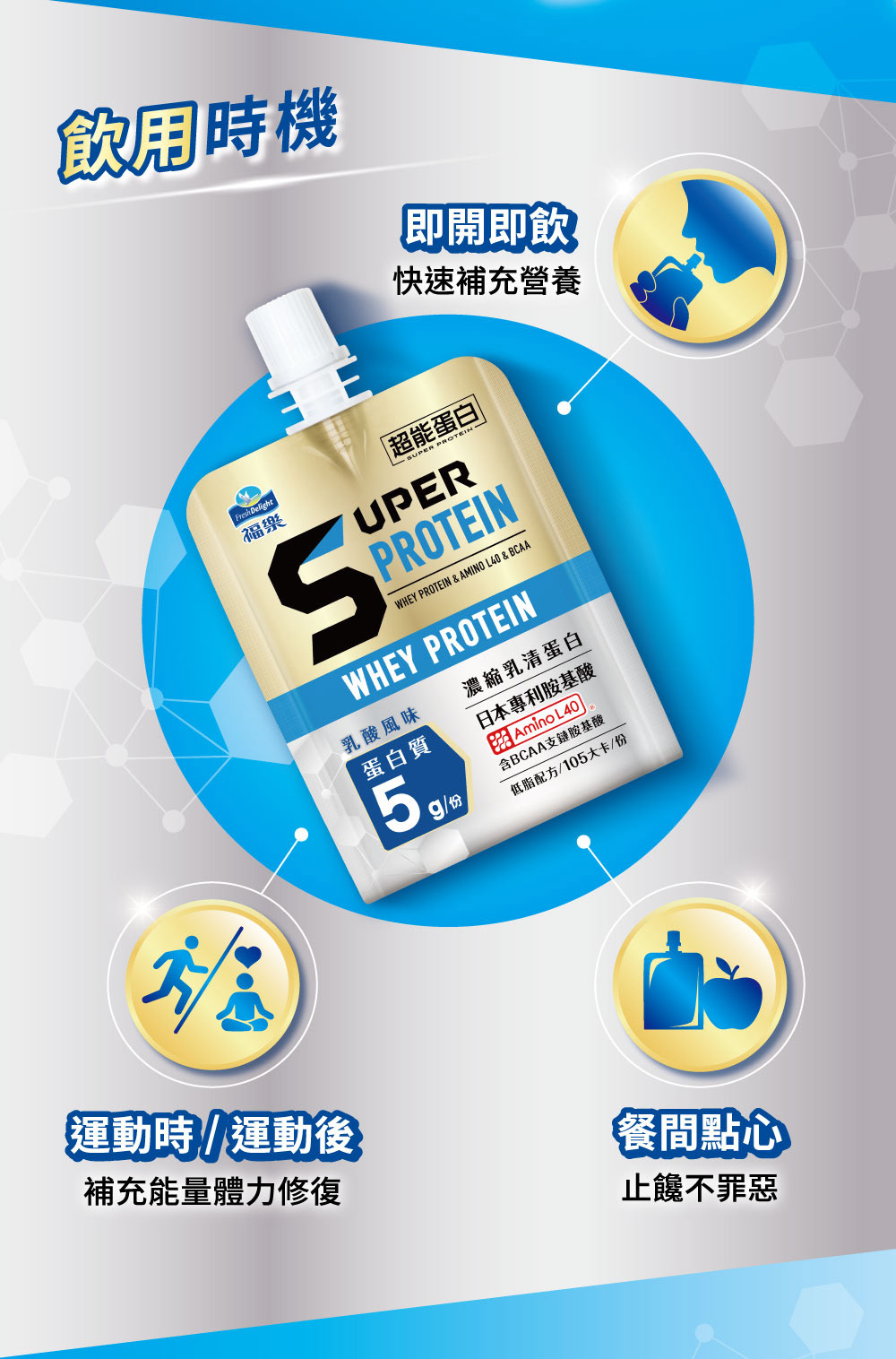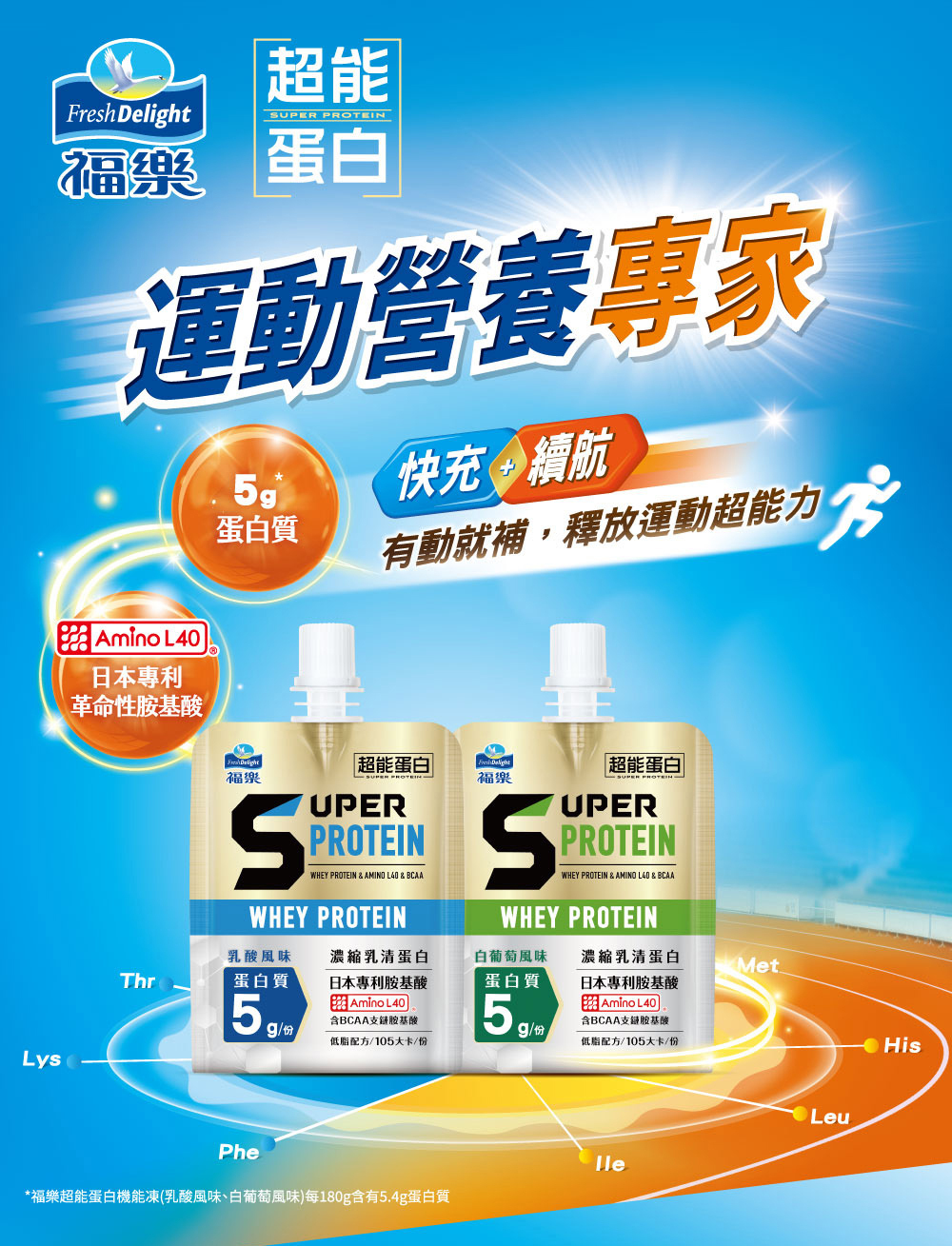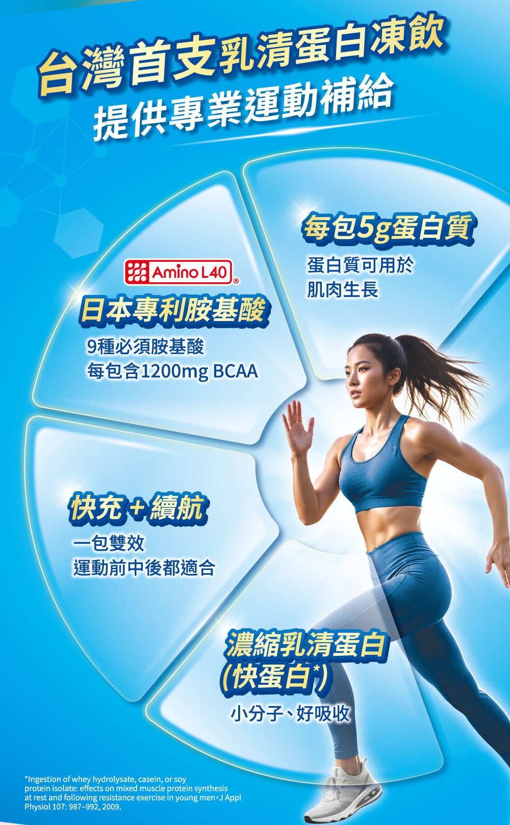 ‧ 台灣首創乳清蛋白凍飲,添加濃縮乳清蛋白,幫助肌肉修復