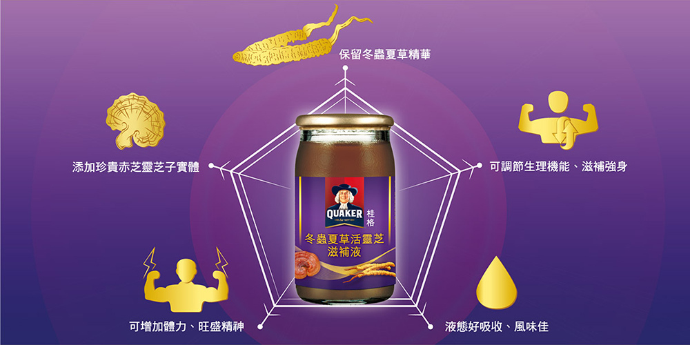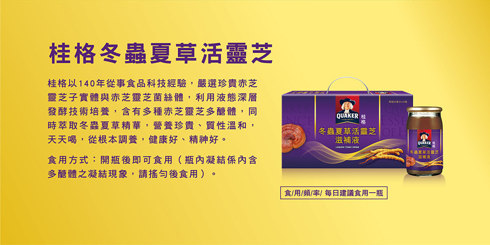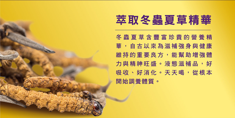 | 成分/內容物 | 冬蟲夏草靈芝液(水、赤芝靈芝液、冬蟲夏草)、冰糖、蜂蜜、玉米糖膠、檸檬酸、DL-蘋果酸 |