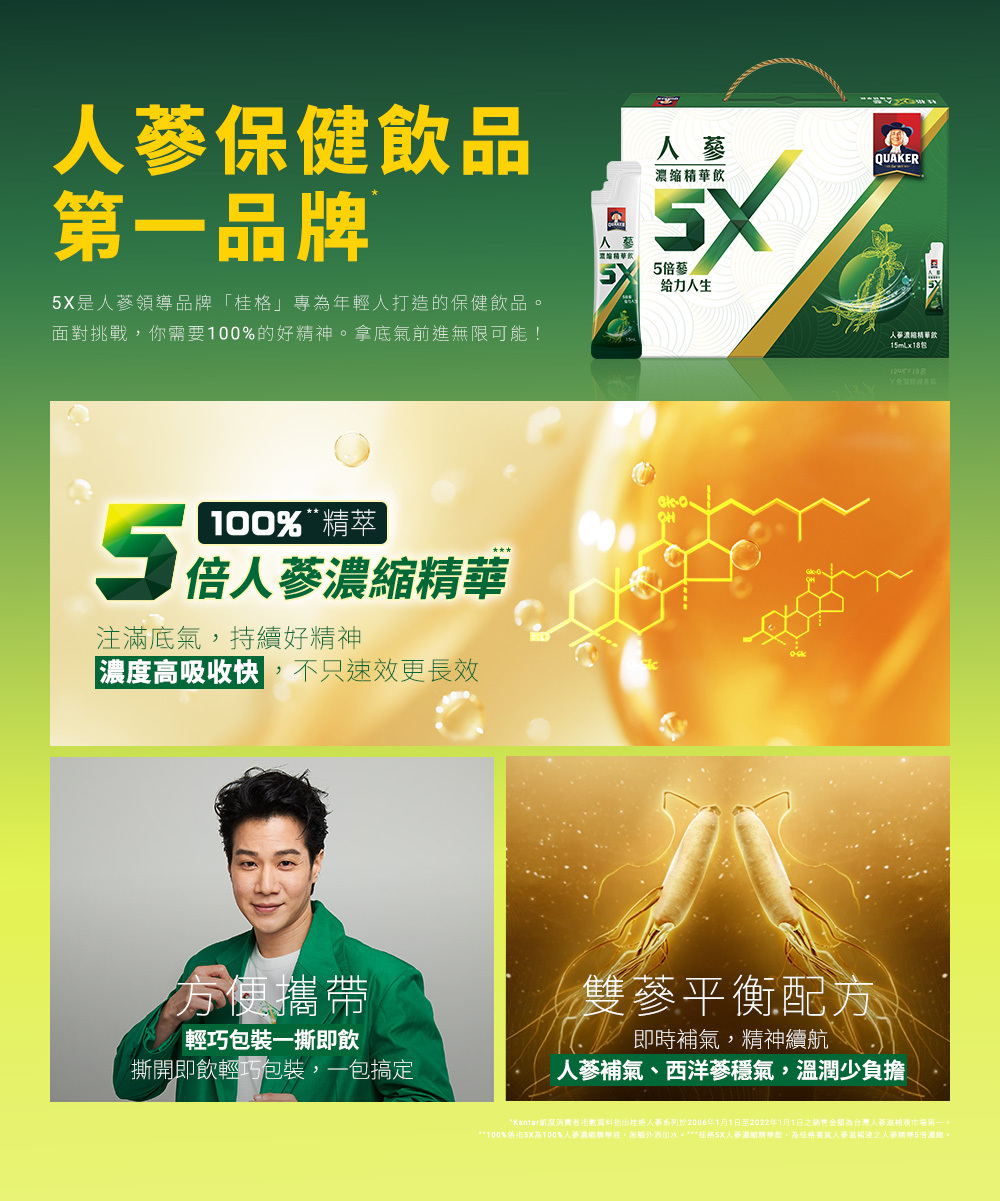 .5倍人蔘濃縮精華*,雙蔘補氣,好精神續航!