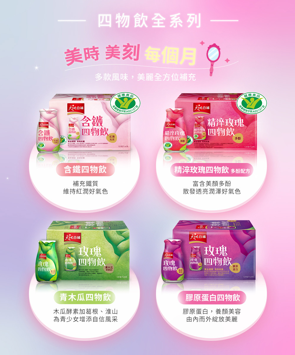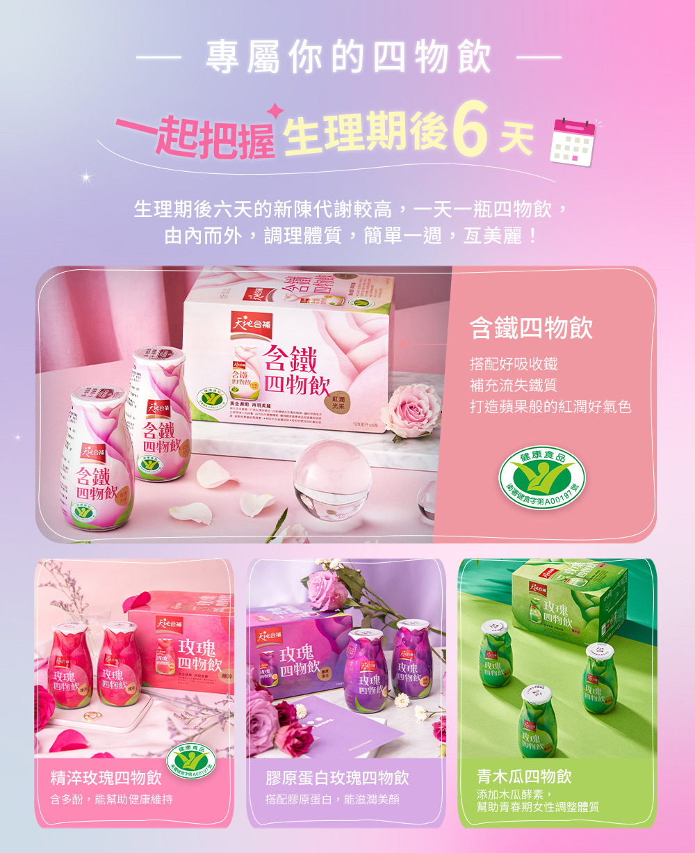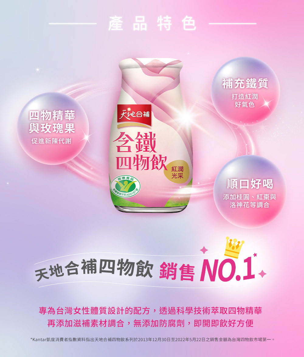市場領導品牌,專為台灣女性體質設計玫瑰四物飲配方