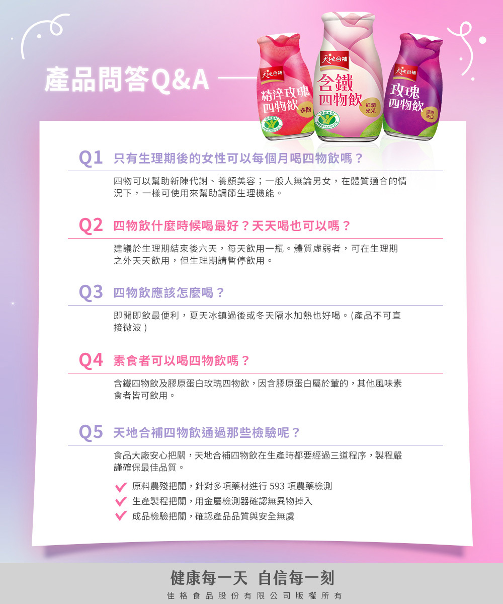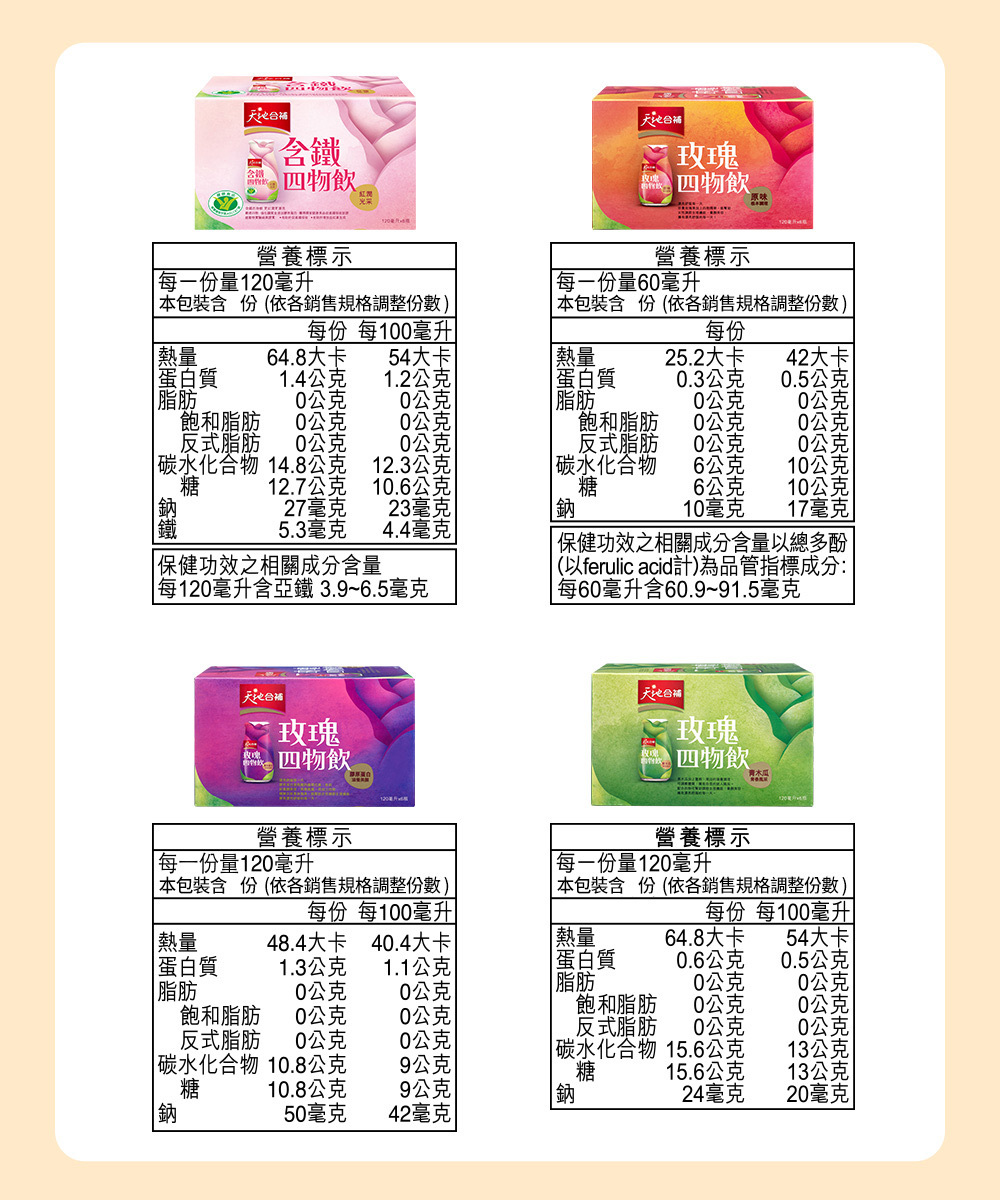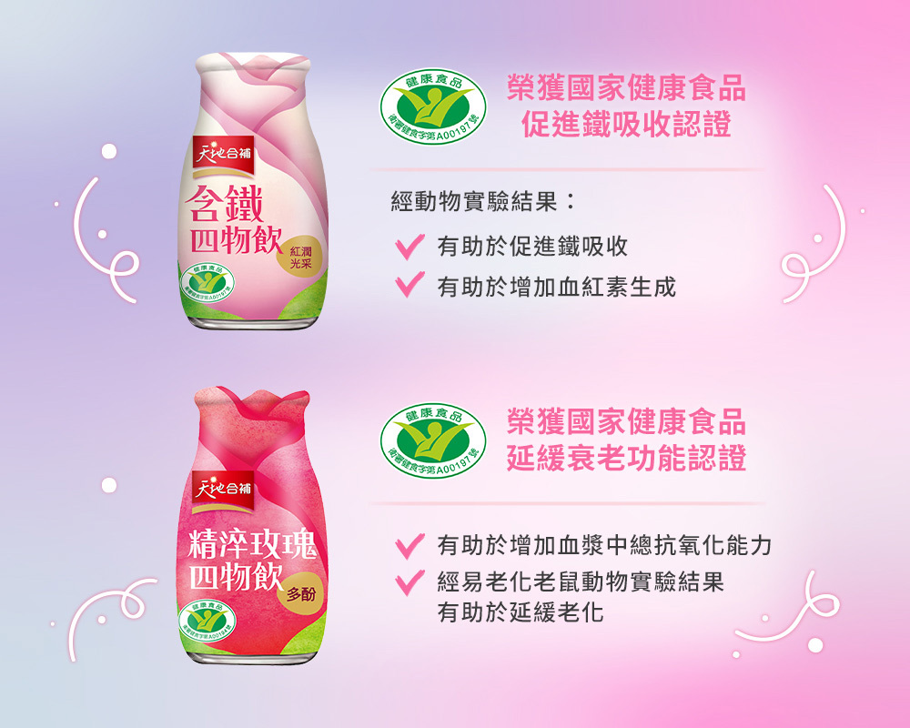 市場領導品牌,專為台灣女性體質設計玫瑰四物飲配方