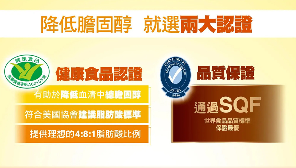 .國家健康認證,經動物實驗證實,有助於降低血清中總膽固醇,健康少負擔