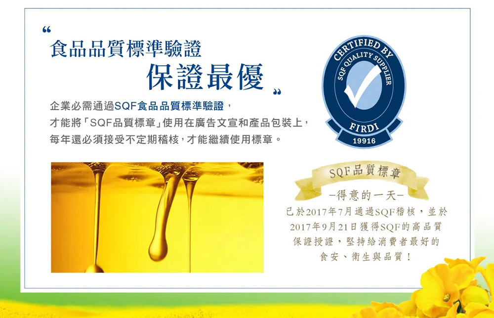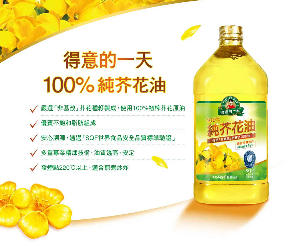 .多重專業精煉技術,使芥花油的油質透亮且安定