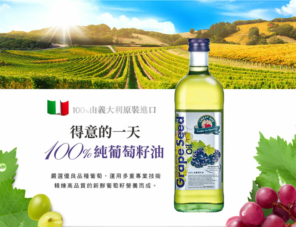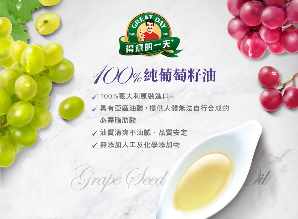 .葡萄籽油具有亞麻油酸以及天然抗氧化成分「花青素」(O.P.C)