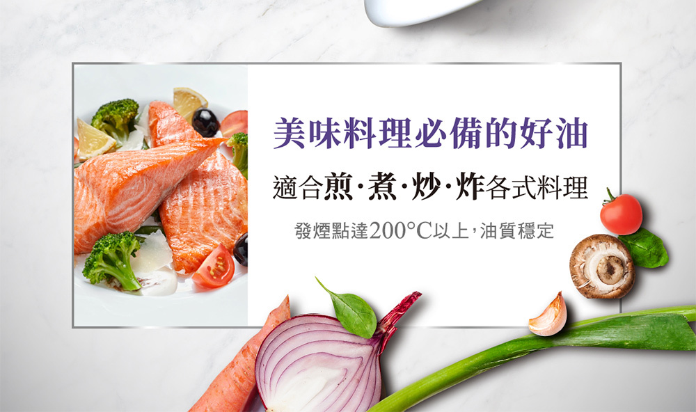.發煙點200℃以上,適合煎煮炒炸各式料理
