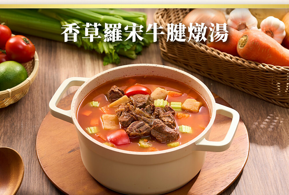 .義式香草與番茄泥搭配牛骨高湯慢燉,成就經典羅宋湯頭。