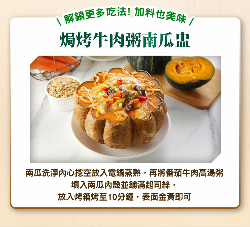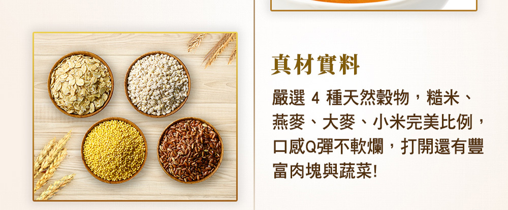 .4 種天然穀物與牛骨高湯一同慢燉,口感 Q 彈不軟爛。