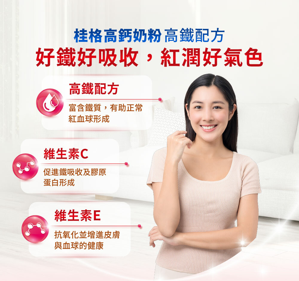 .富含鐵質、2倍鈣,同時添加維生素C及D3