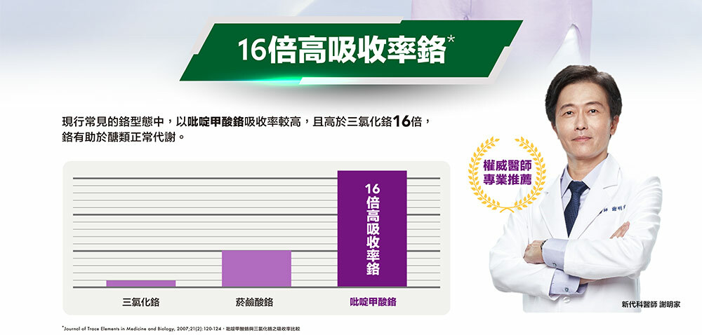 .16倍高吸收100鉻,長時間維持醣類正常代謝