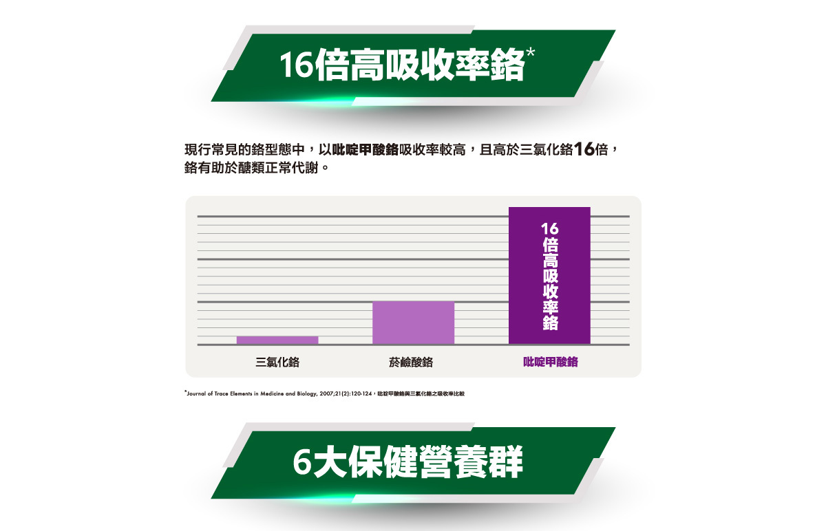 .提供六大保健營養群(鉻100、鋅、鎂、菸鹼素、泛酸、生物素),補充多元營養,促進新陳代謝,維持健康