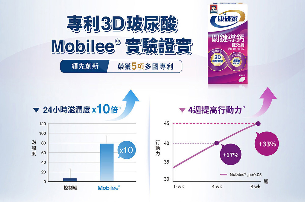 *每日食用80毫克Mobilee®,4週行動力有感提升