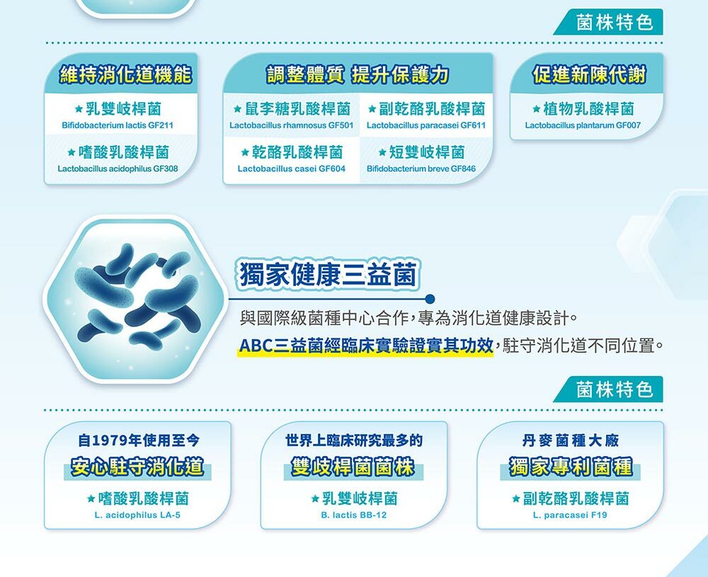 .10種專利益菌株:幫助營養吸收,維持健康菌叢生態,提升保護力