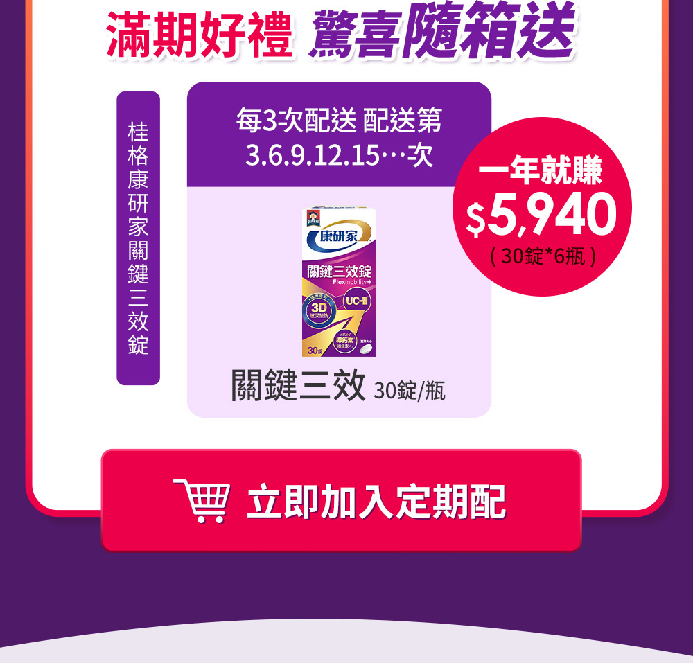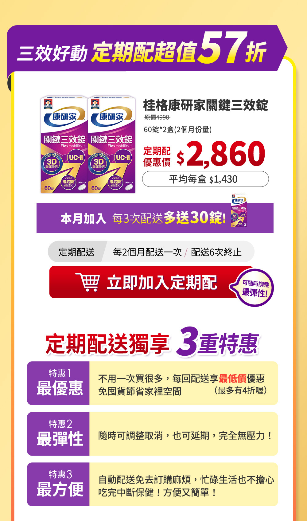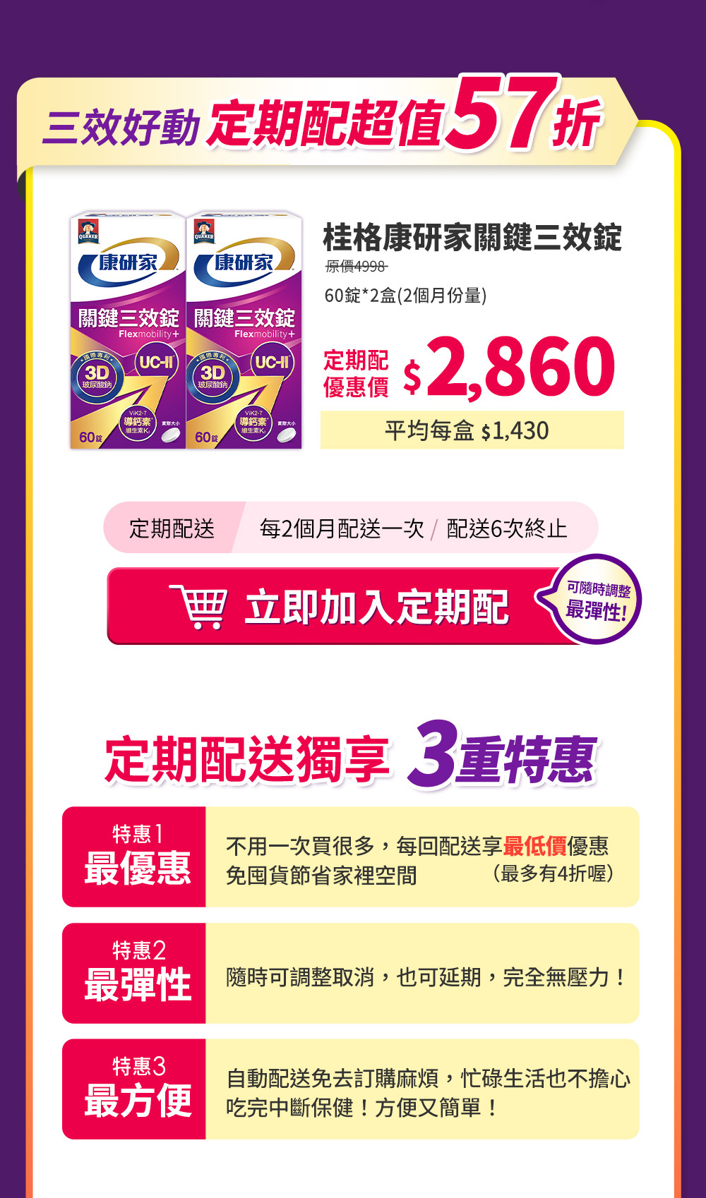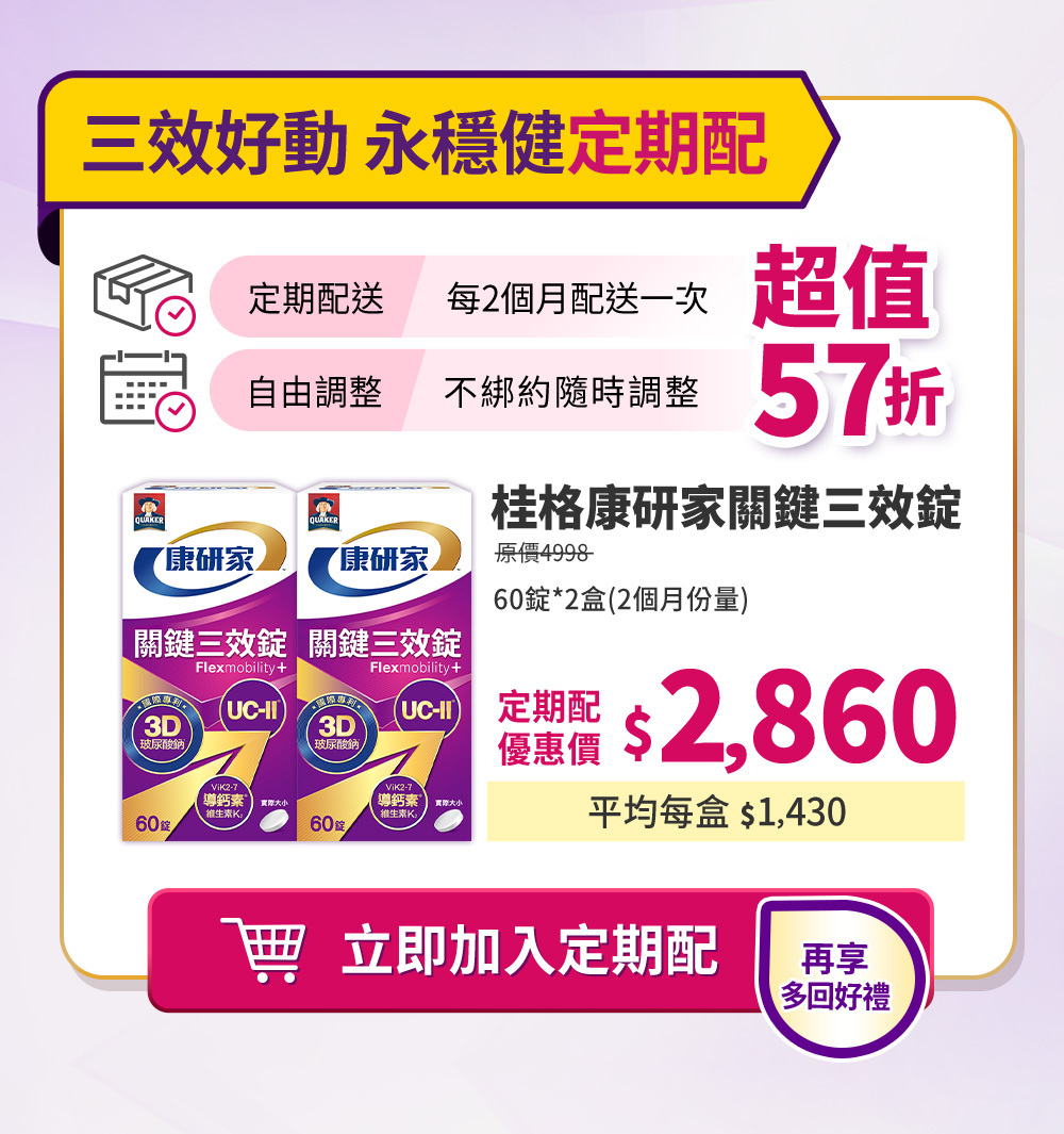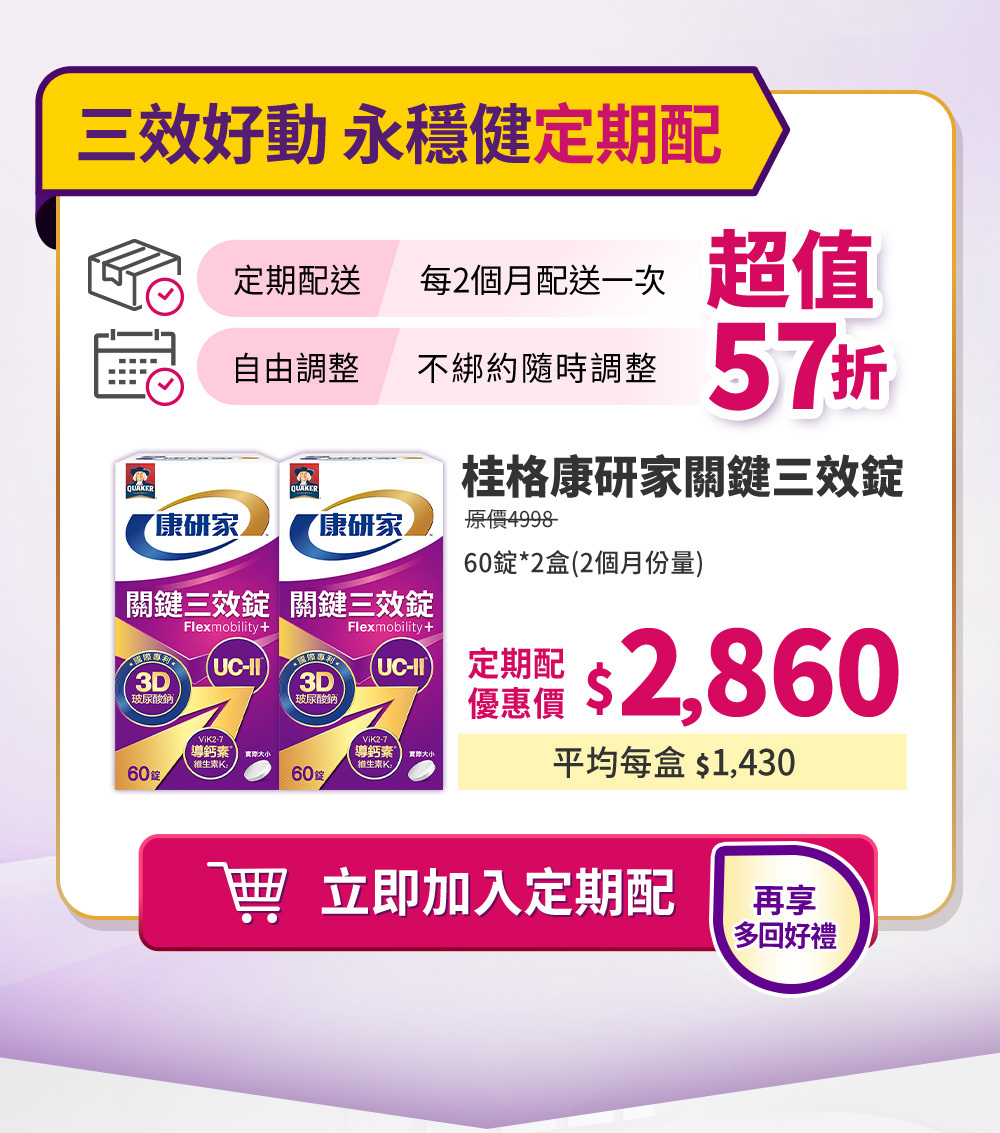 【定期購 每期60天】桂格康研家 關鍵三效錠60顆X2盒