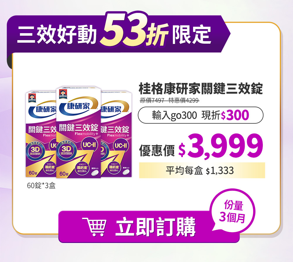 (53折優惠體驗組!)桂格康研家 關鍵三效錠60顆x3盒 [輸碼折$300, 折後$3,999]