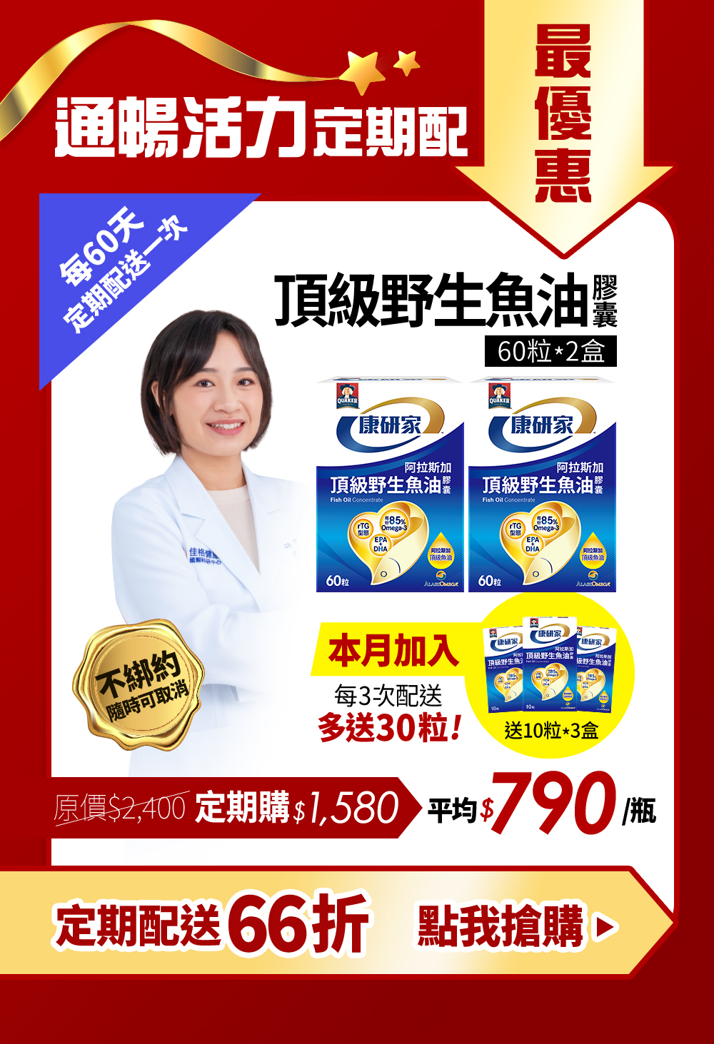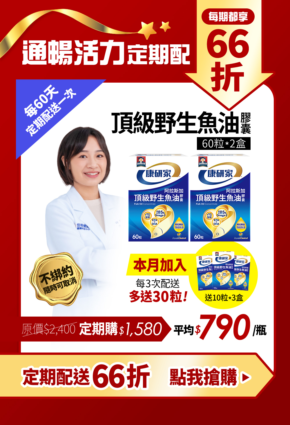 【定期購 每期60天】桂格康研家 頂級野生魚油膠囊60顆X2盒