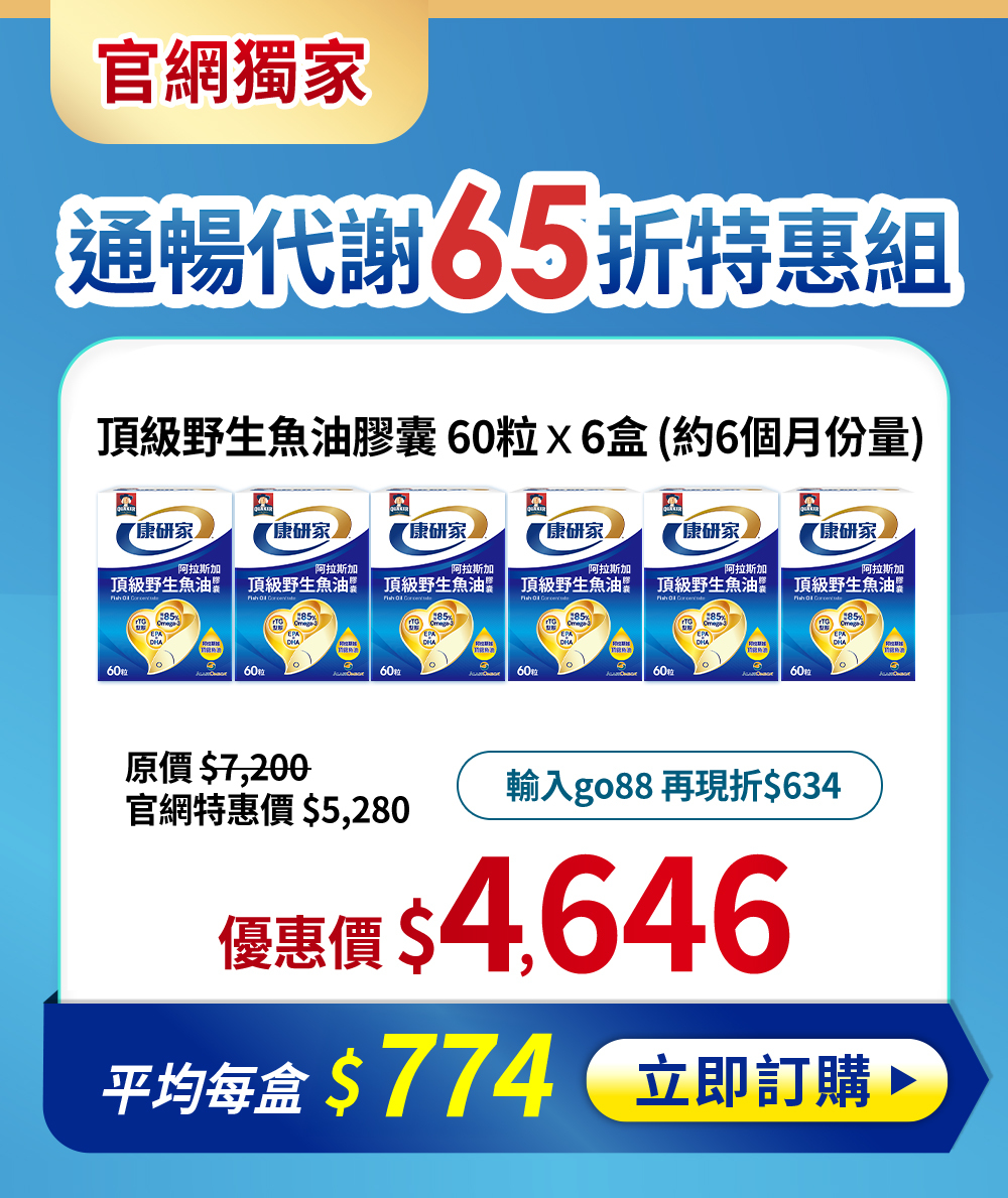 (下單88折!) 桂格康研家 頂級野生魚油膠囊60粒x6盒  [輸碼再88折,折後$4646]