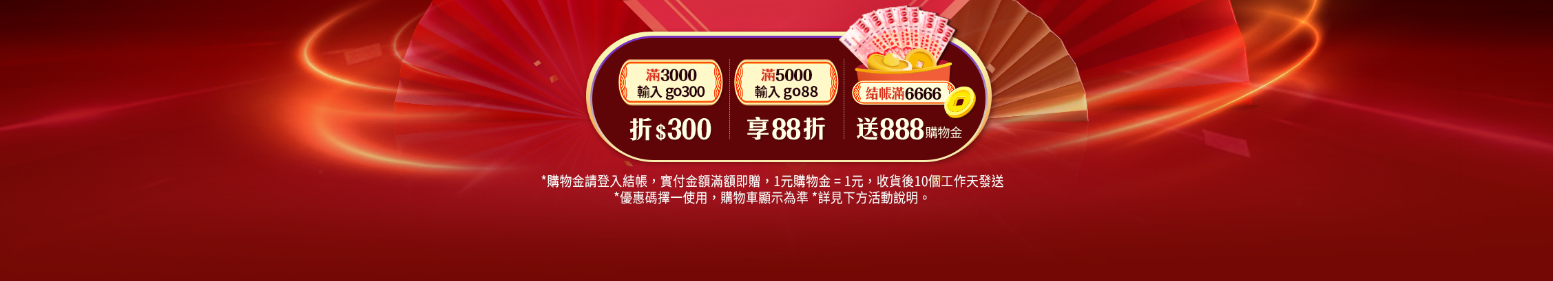 全館滿3,000結帳輸入優惠碼[go300] 現折300