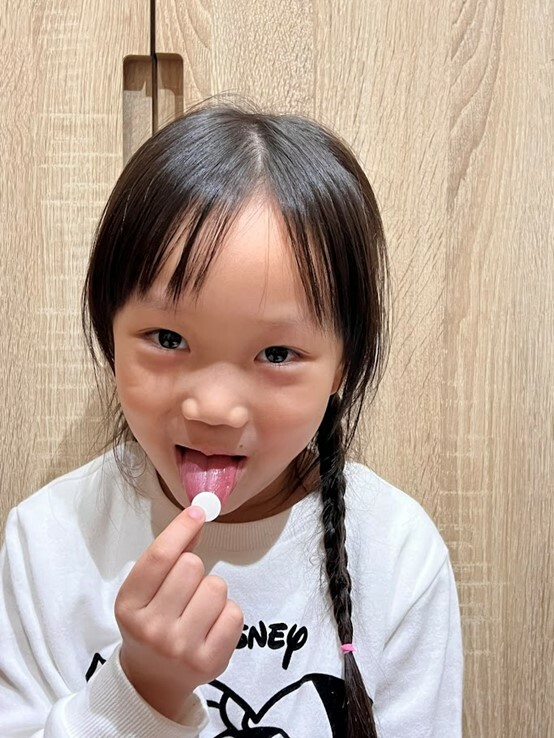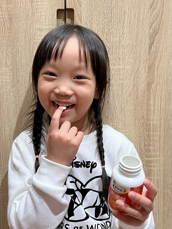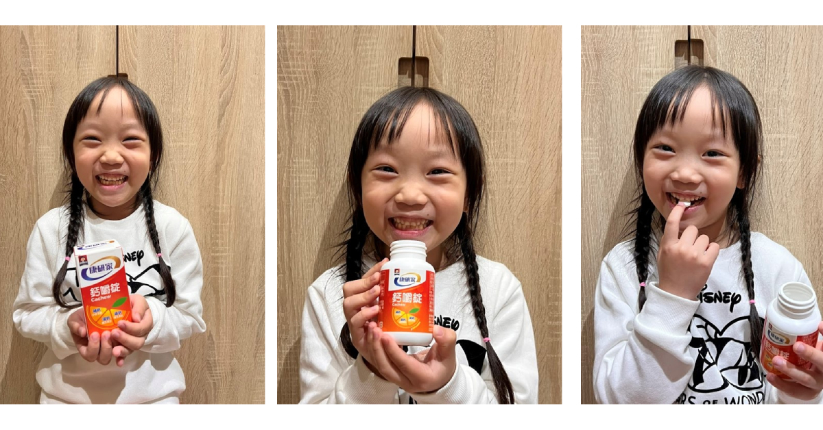 但其實她比較喜歡用舔的,因為鈣嚼錠有豐富的熱帶水果風味,所以吃起來有點微甜,有點水果香味,很像小朋友都愛的糖果,這對於於需要補鈣的小朋友真的很討喜~