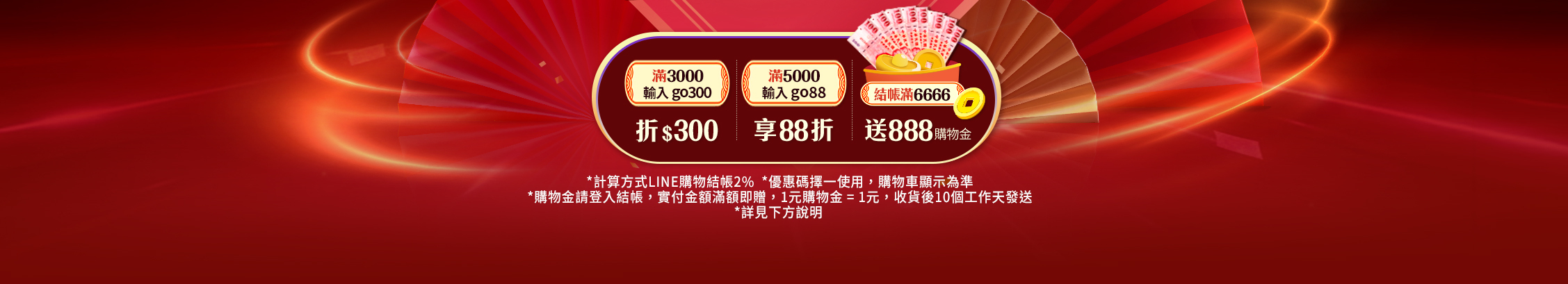 全館滿3,000結帳輸入優惠碼[go300] 現折300