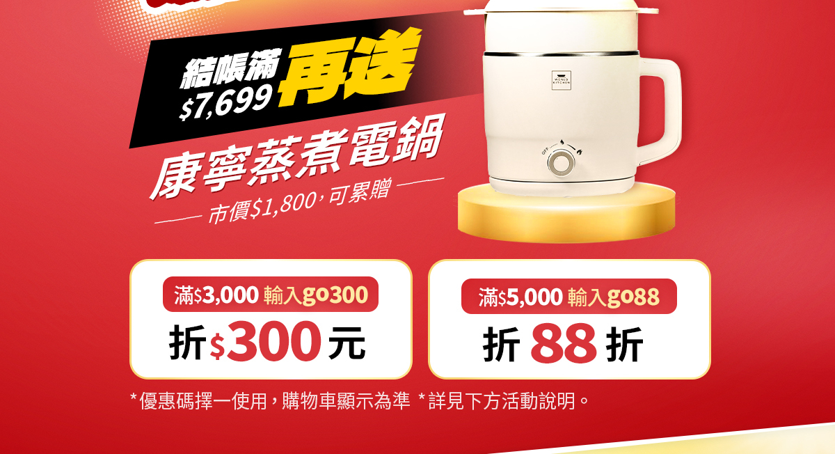 優惠碼<go300> $3,000折$300 優惠碼<go88> $5,000享88折