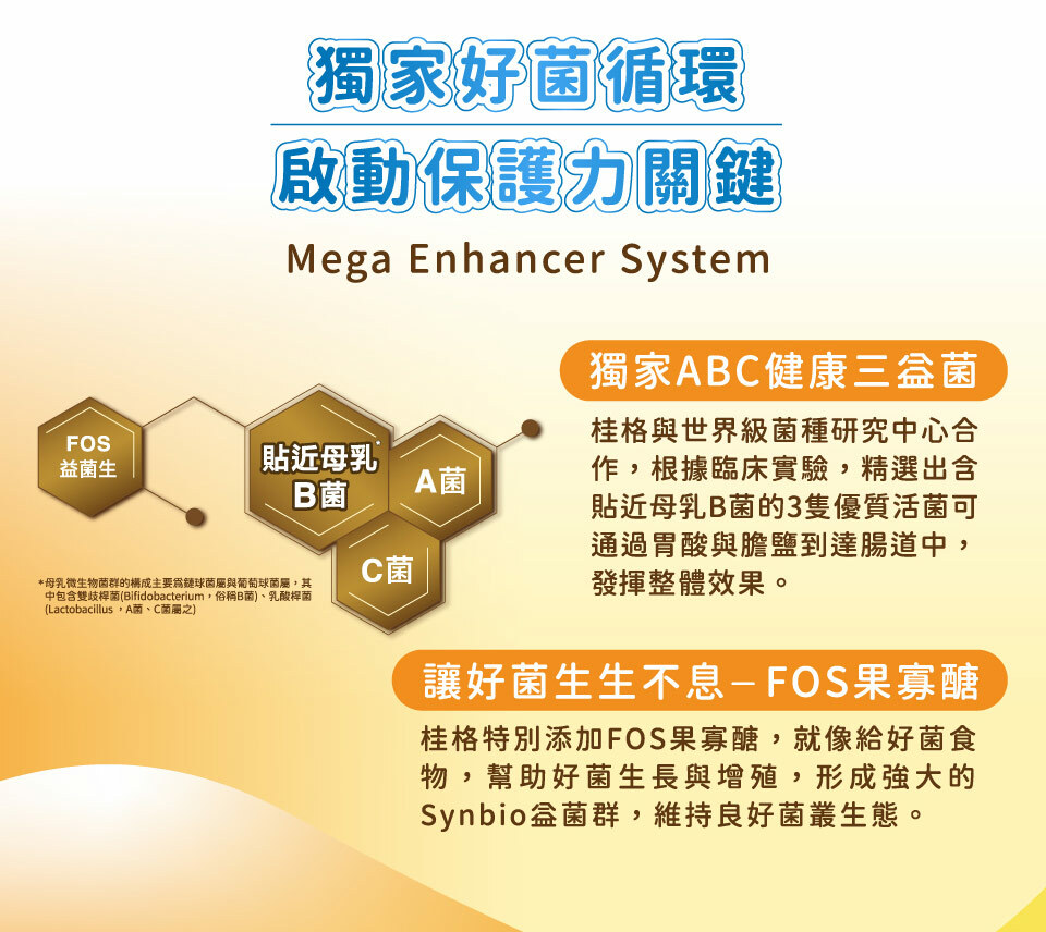 .獨家ABC三益菌+FOS果寡醣,給國小兒童消化道均衡保護