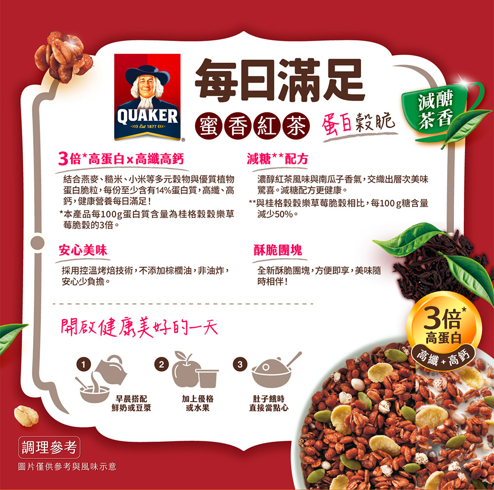 (鮮茶道聯名) 桂格每日滿足蛋白穀脆-蜜香紅茶風味X2袋