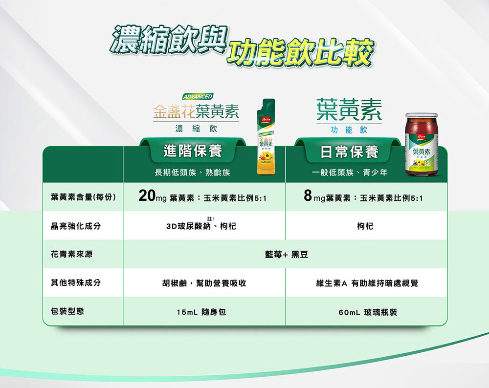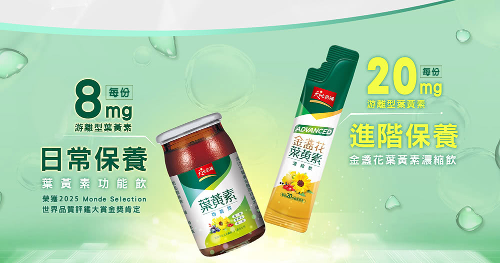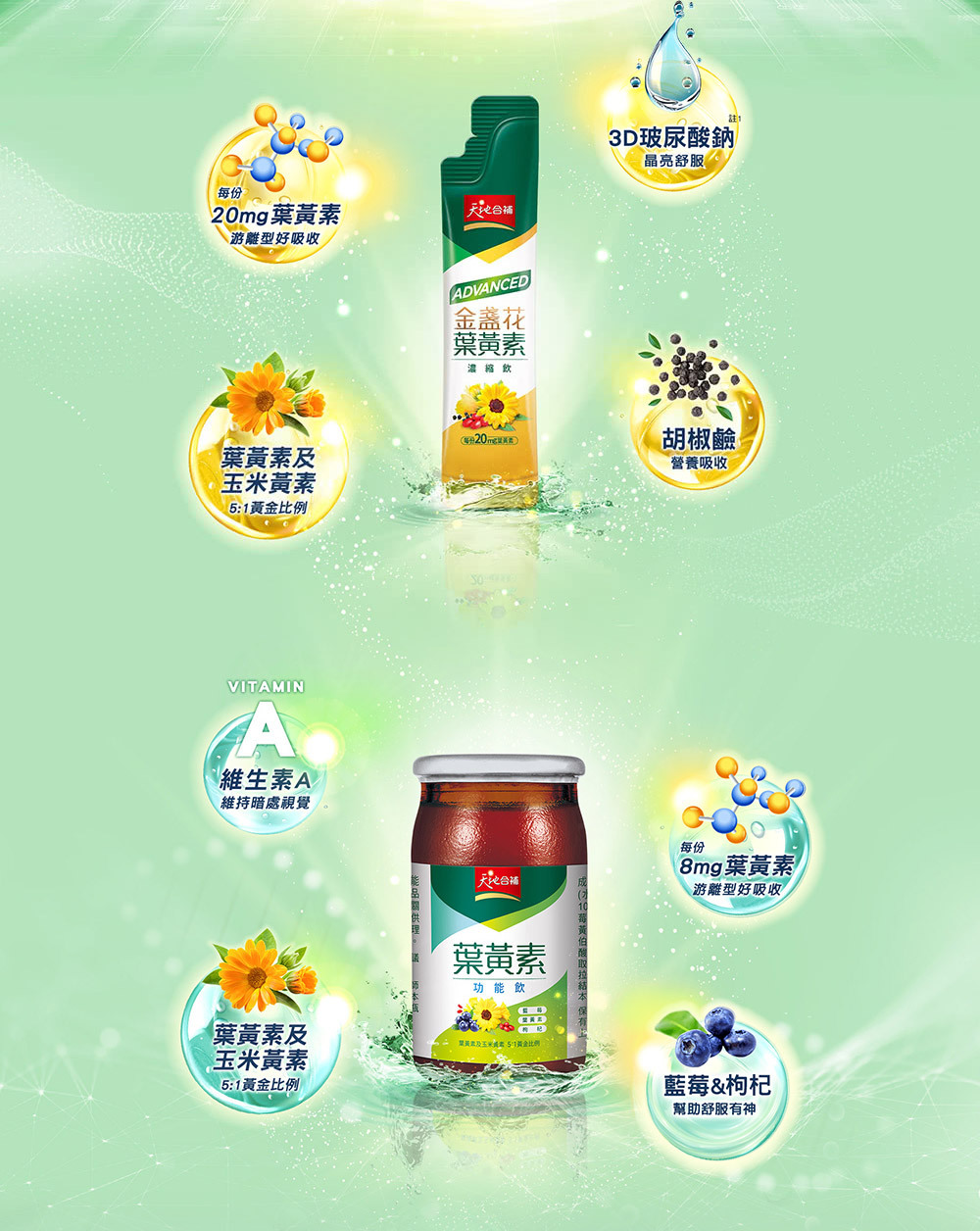 .20毫克游離型葉黃素,天地合補葉黃素飲進階保養更有感