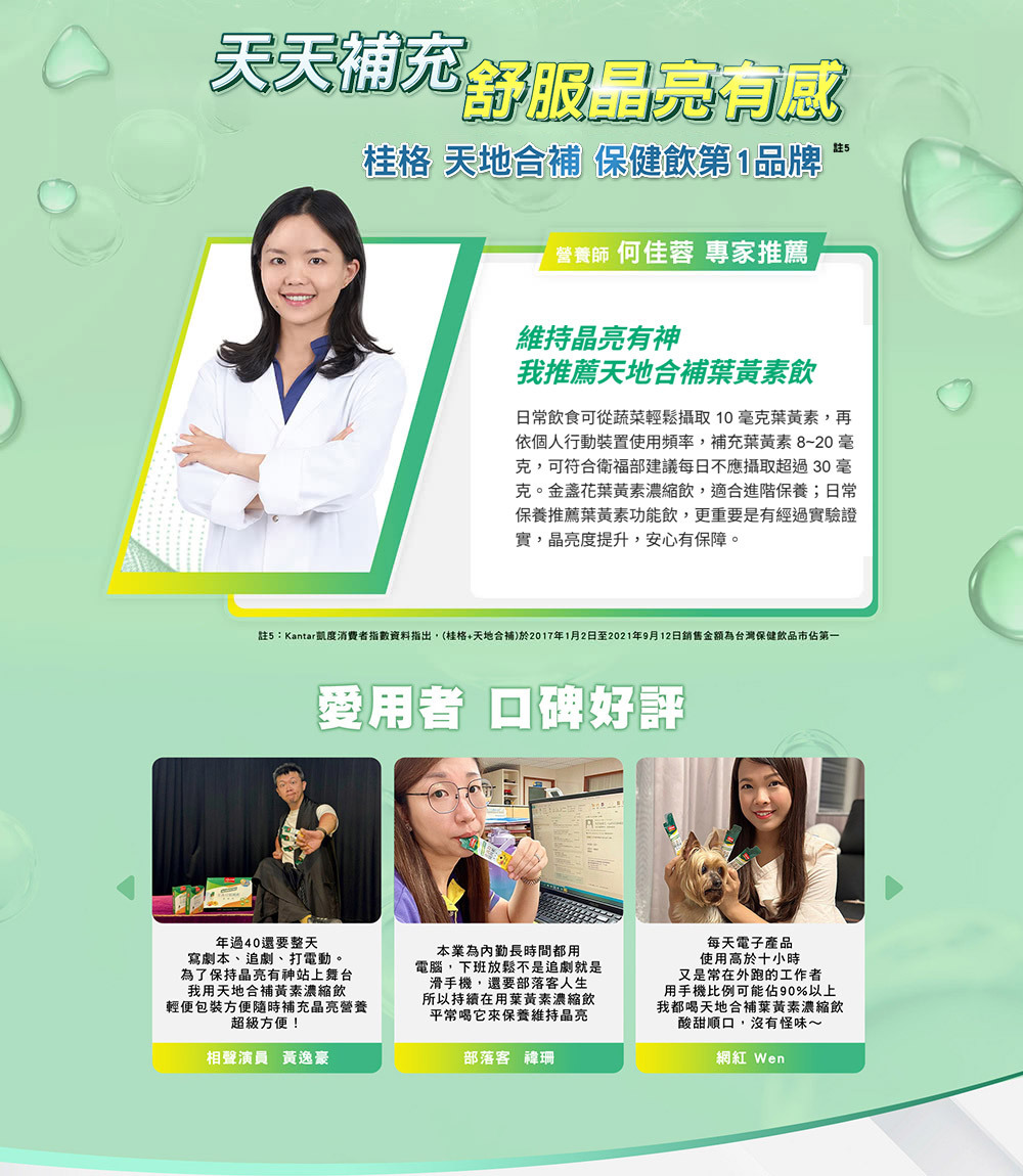 .天地合補葉黃素全系列人體實證,三大晶亮有感