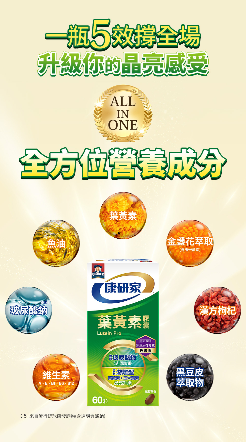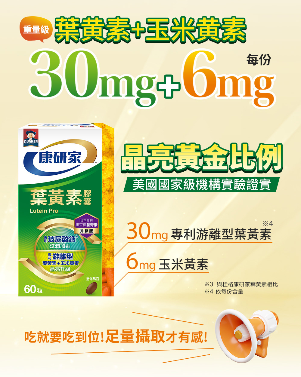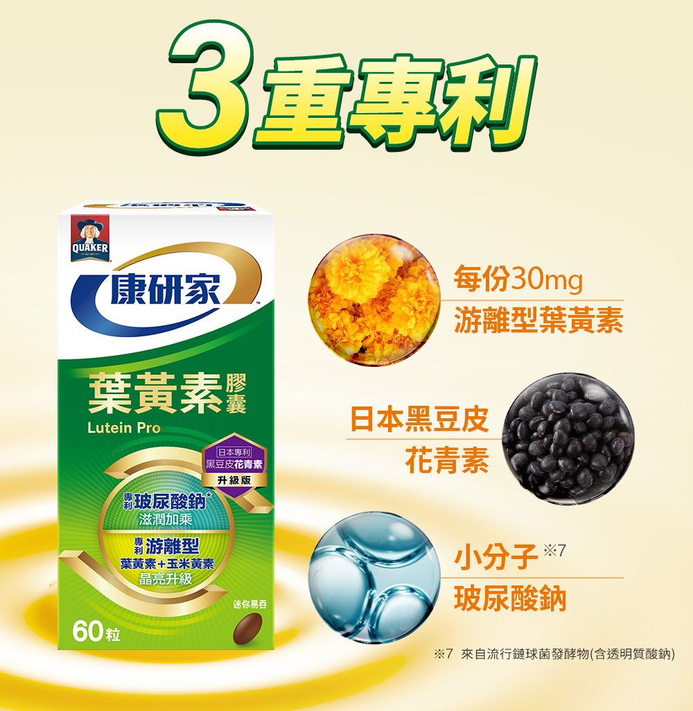 游離型葉黃素、玉米黃素增量50%*!3重專利,關鍵成分再升級