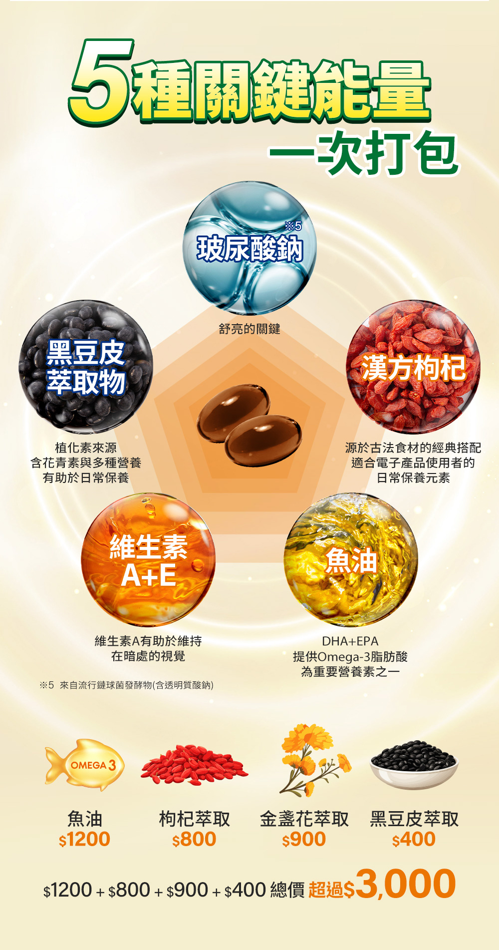 .中西水亮配方(枸杞、魚油、維生素A、維生素E),保養更全面