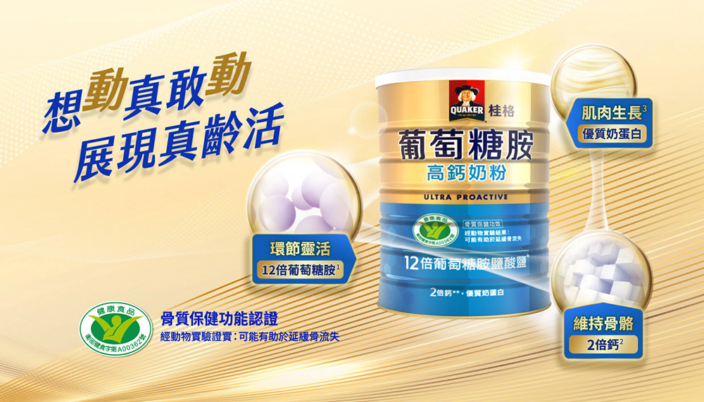 榮獲國家健康食品骨質保健功能認證的葡萄糖胺奶粉