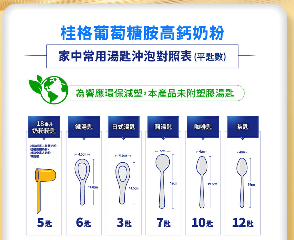 *每100毫升中葡萄糖胺鹽酸鹽含量為原配方的12倍、每100毫升鈣質含量為桂格100%低脂奶粉的2倍